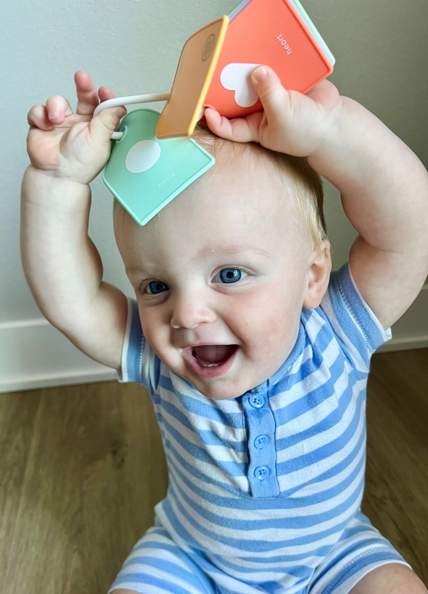 Meet our new Montessori-inspired teething flash cards! Made from soft, food-grade, BPA free silicone, these are a learning accessory designed to grow with your little one. Learn shapes, colors, and soothe aching gums at the same time!