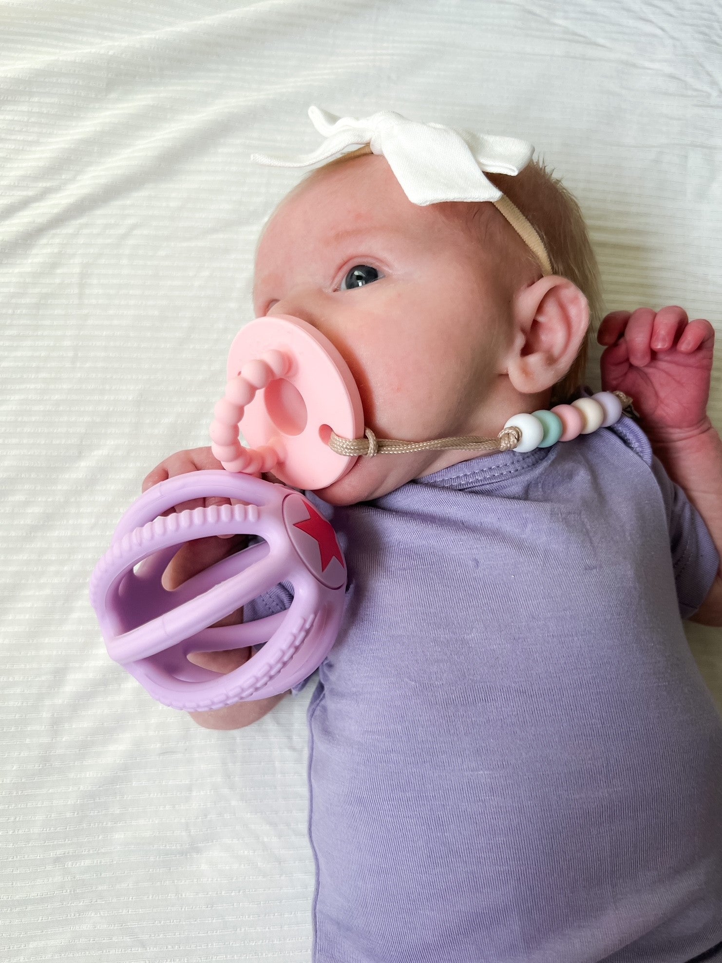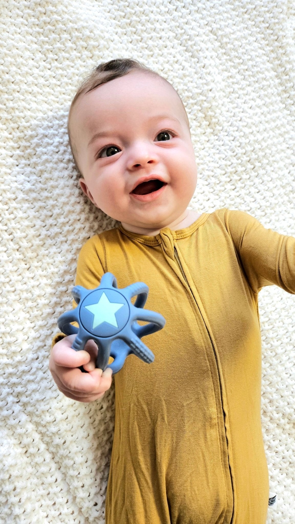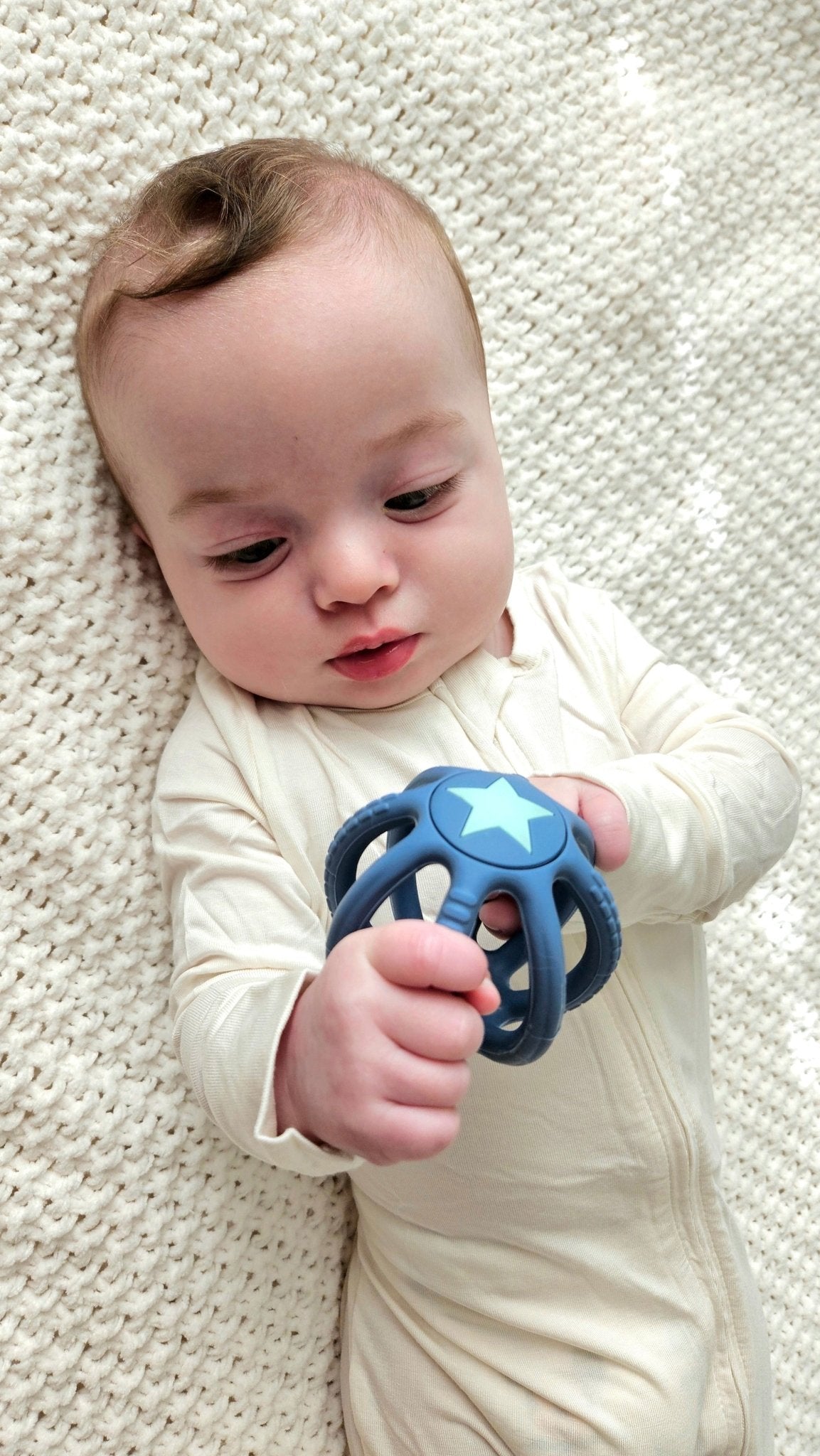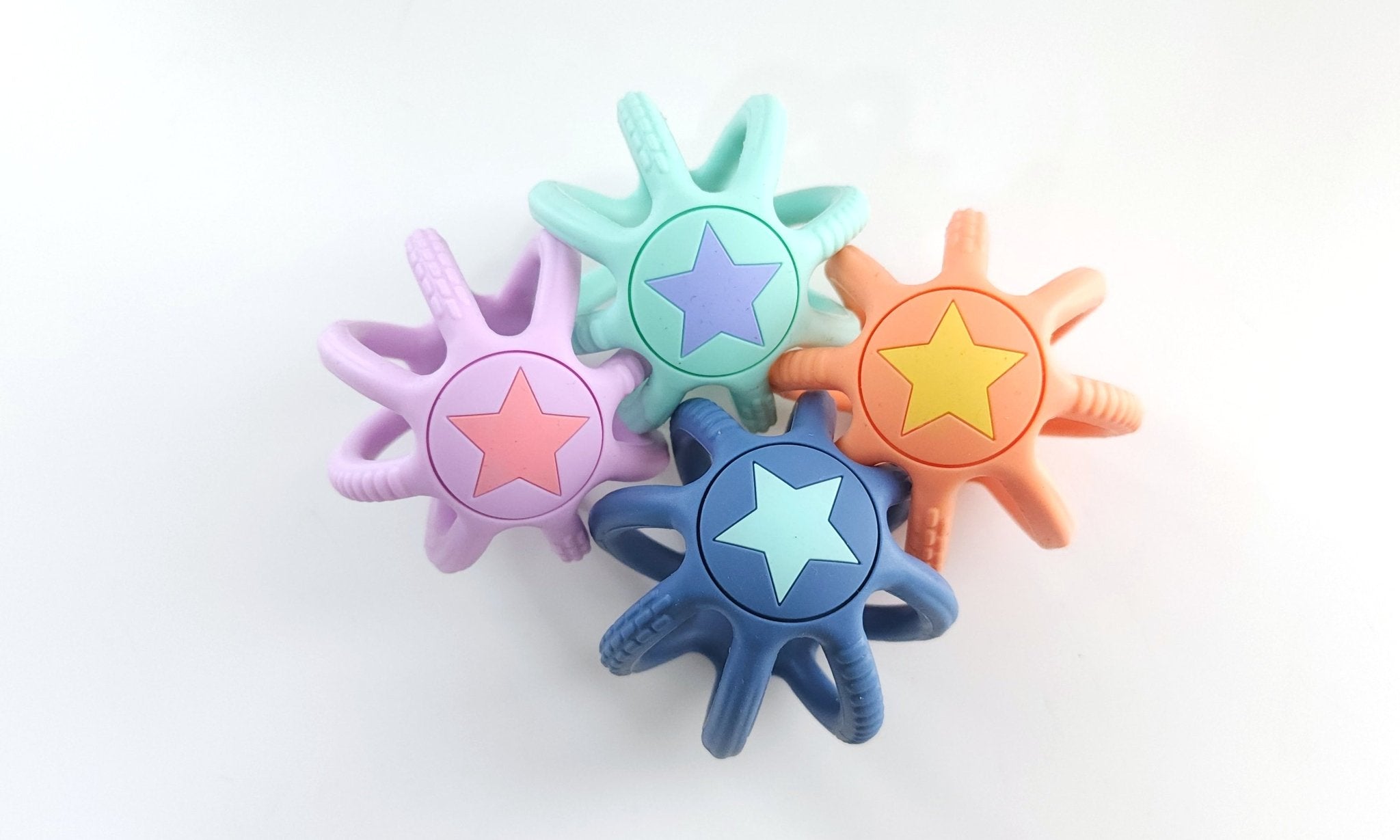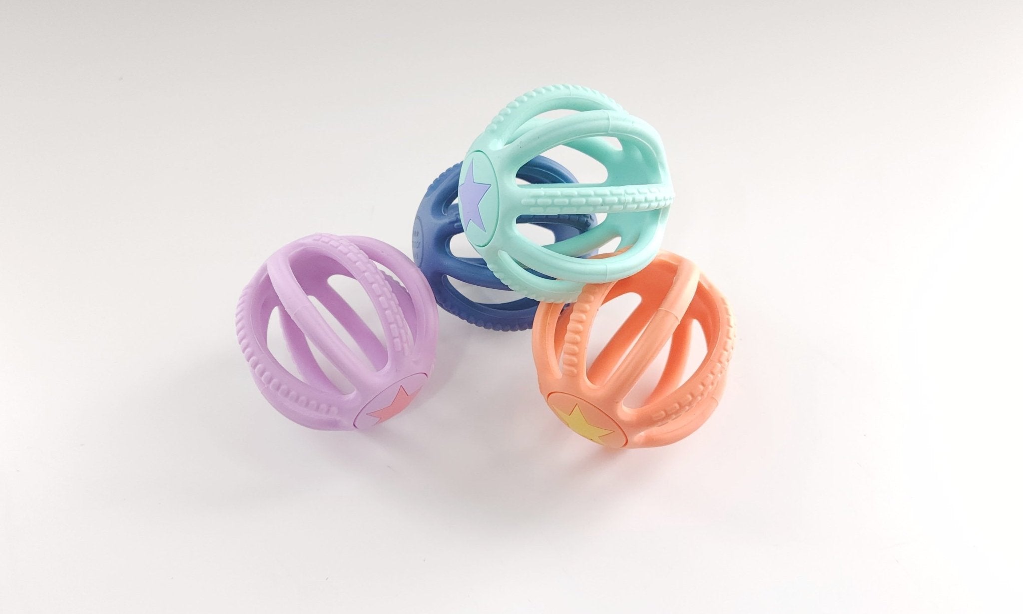 A super lightweight, easy to hold silicone ball is the perfect play item for the youngest of babies. Designed for easy grasping with little fingers and super squishy for fun playing! Our soft silicone ball also has textures on the sides to give baby something to gum at and make it easy for them to use. Available in 4 beautiful colors!