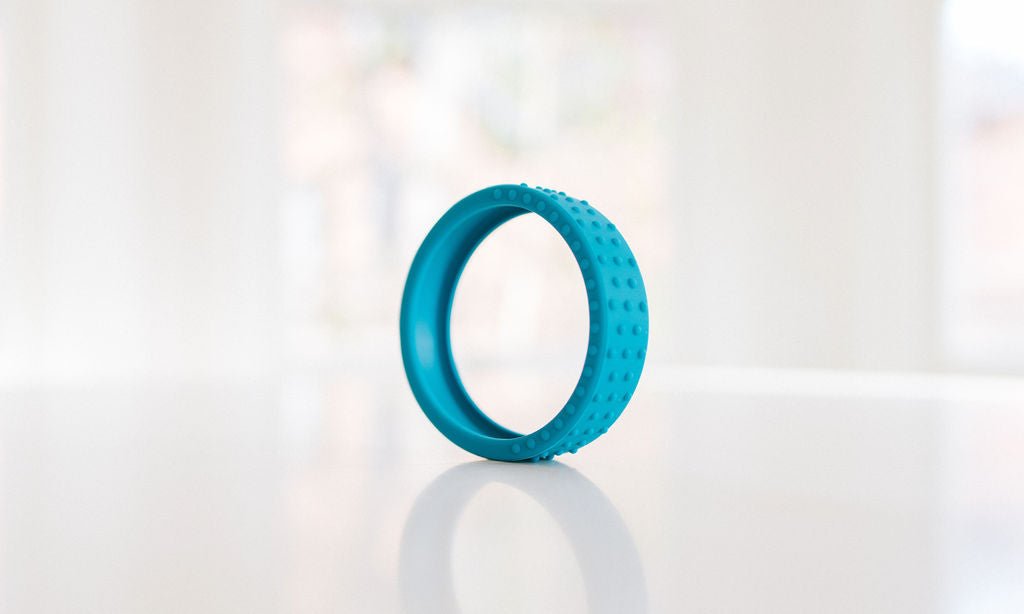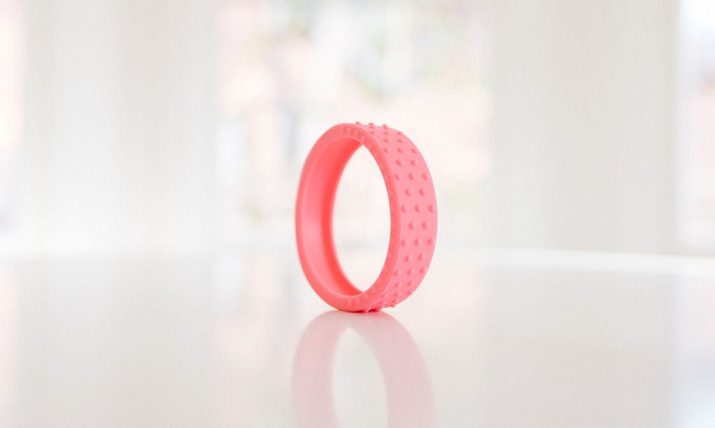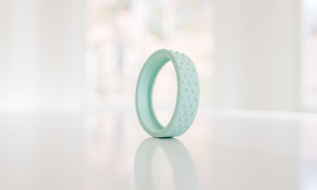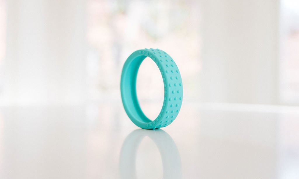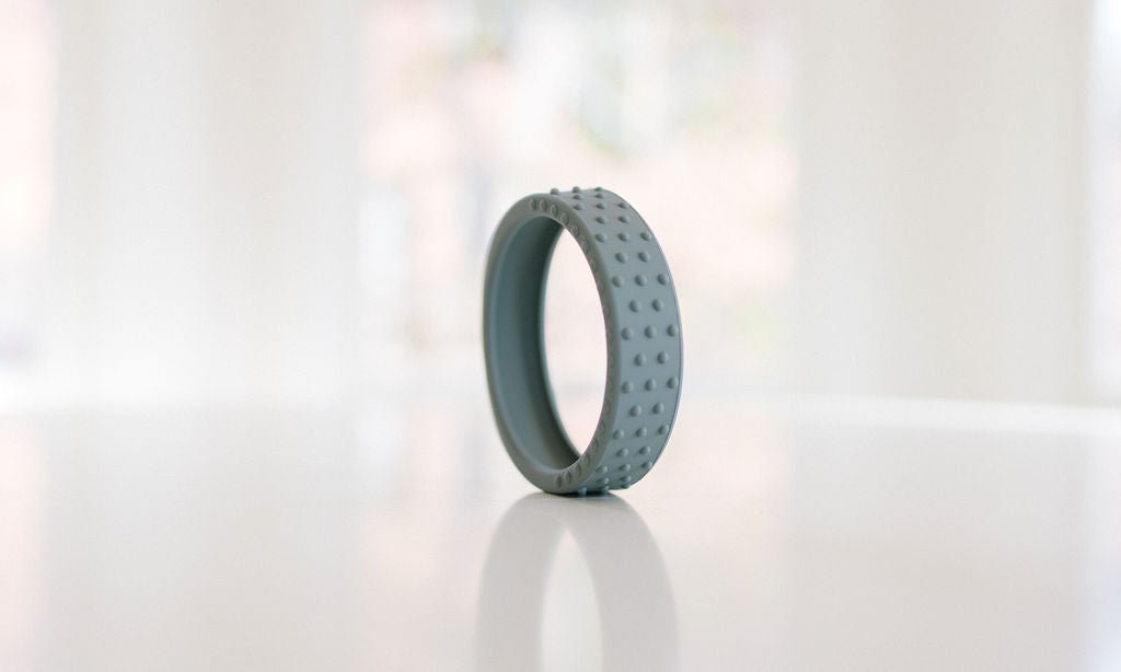 Our new textured silicone wrap fits snuggly around a hard maple wood teether ring and is interchangeable if you want to swap out the color. This listing for an extra wrap ONLY, and does not include the wooden teether.