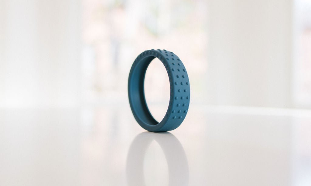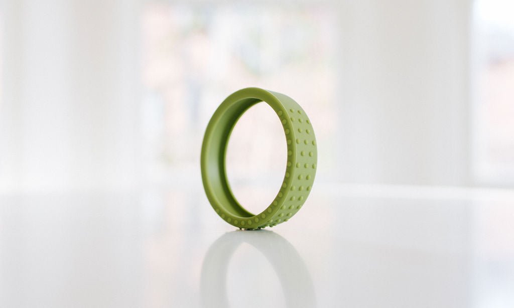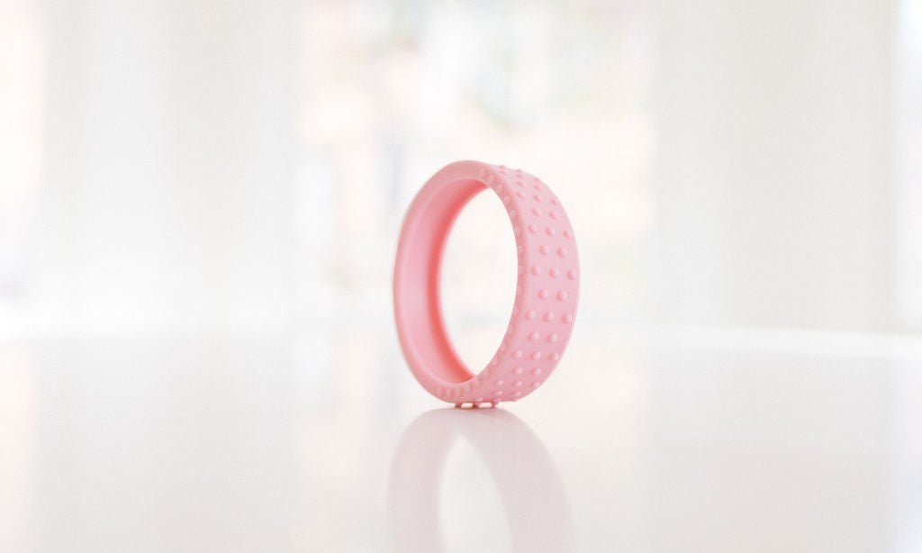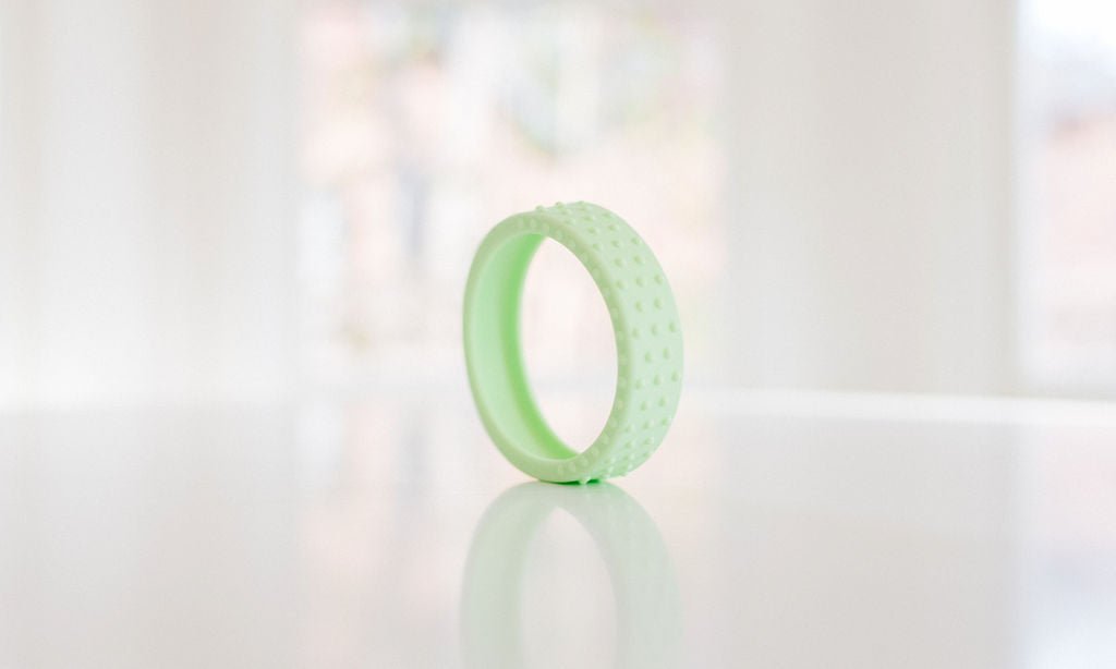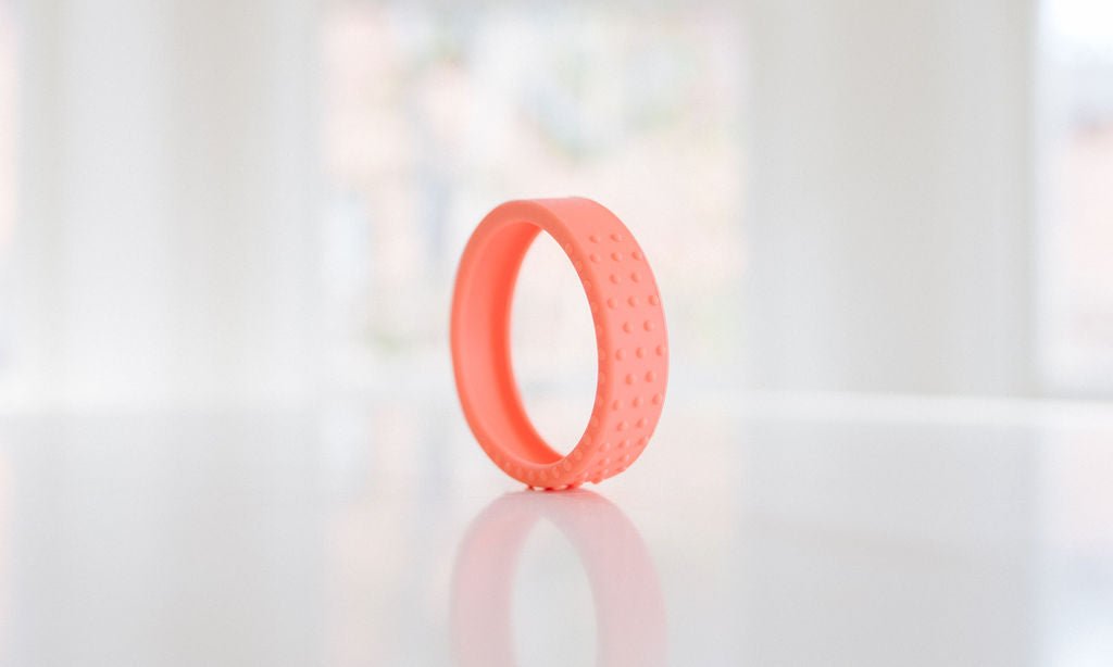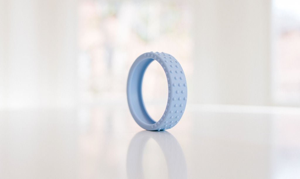Our new textured silicone wrap fits snuggly around a hard maple wood teether ring and is interchangeable if you want to swap out the color. This listing for an extra wrap ONLY, and does not include the wooden teether.